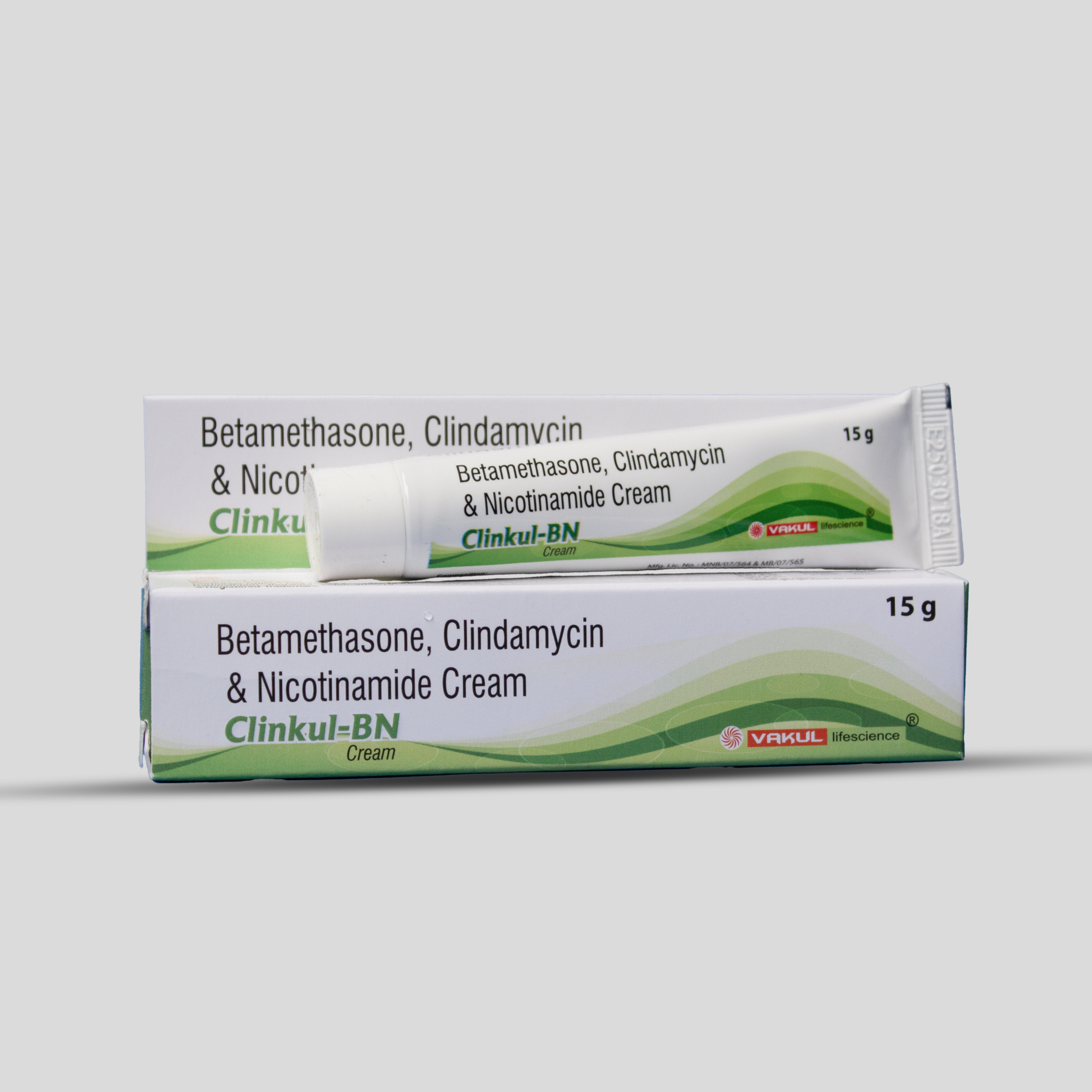 Clinkul-BN Cream is a triple-combination dermatological formulation containing Betamethasone, Clindamycin Phosphate, and Nicotinamide, developed to effectively treat acne, pimples, inflammation, and bacterial skin infections.