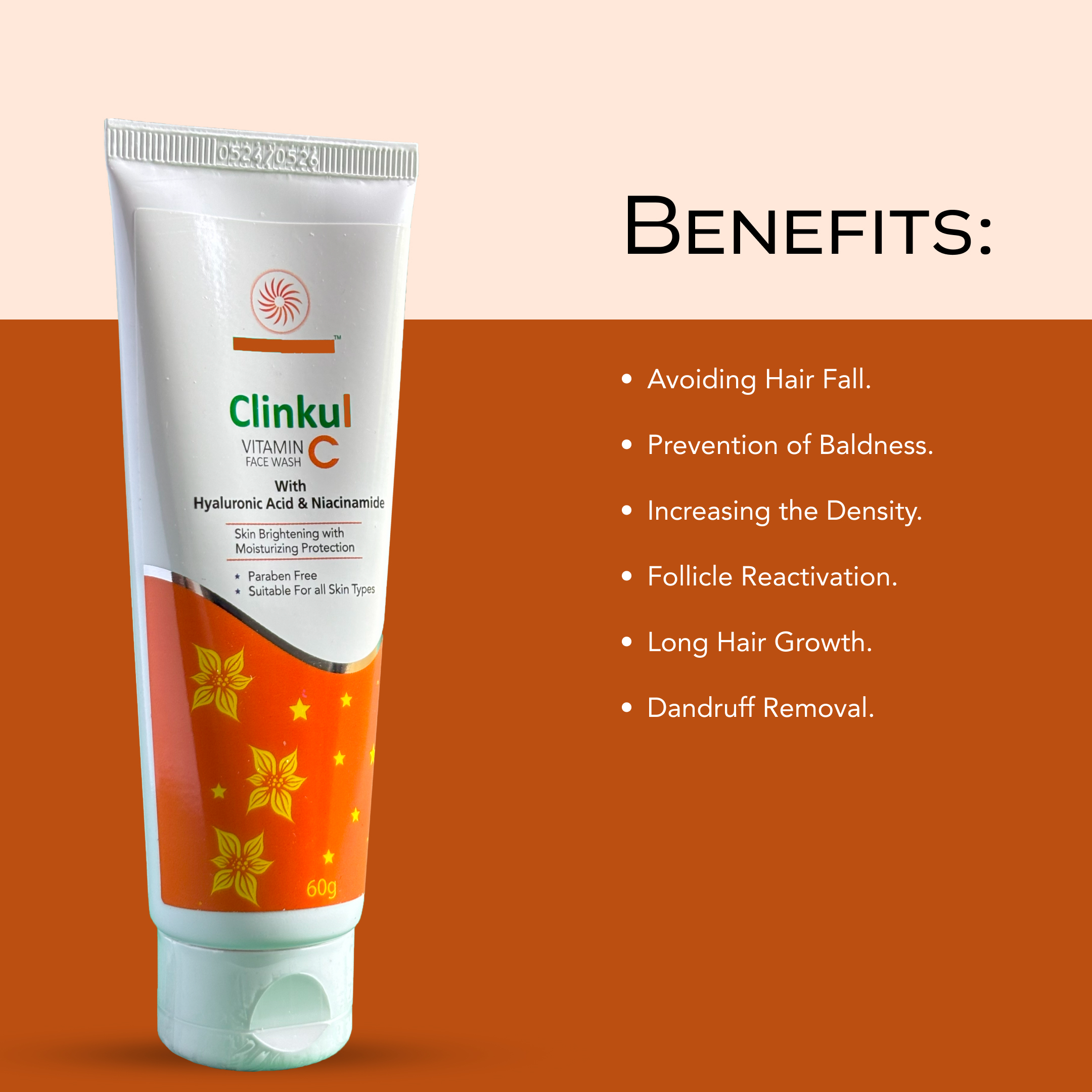 CLNIKUL Vitamin-C Face Wash is a gentle yet powerful cleanser enriched with Vitamin C, Mulberry Extract, and Licorice Extract that helps brighten dull skin and remove impurities. It deeply cleanses while maintaining the skin’s natural moisture, leaving it soft, fresh, and radiant.